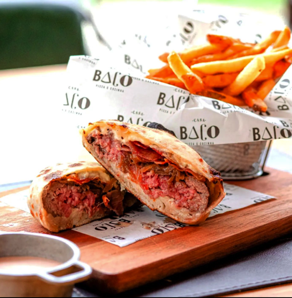 Se você é apaixonado pelas criações do talentoso Gil Guimarães, então você precisa conhecer o hambúrguer autêntico que ele preparou para a Casa Baco do Mané Brasília e do Casa Park. Chamado de Baco Burger, a opção é envolta na massa de pizza e recheada com um hambúrguer inesquecível. Ficou curioso? Visite uma das unidades citadas e entenda por que todo mundo ama esse burger.