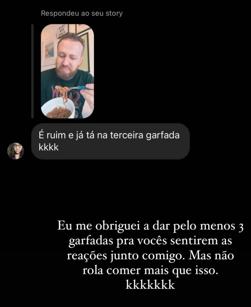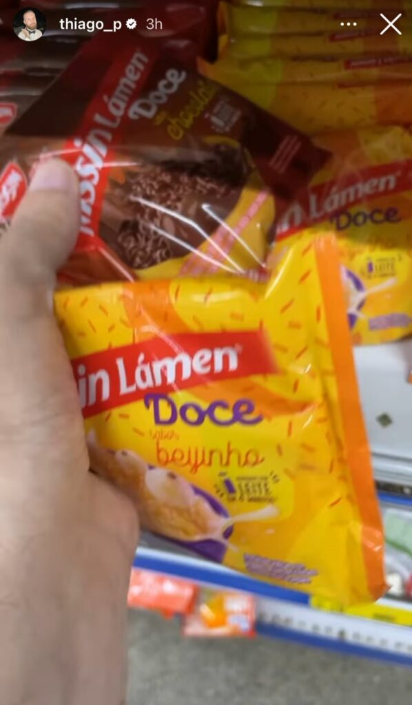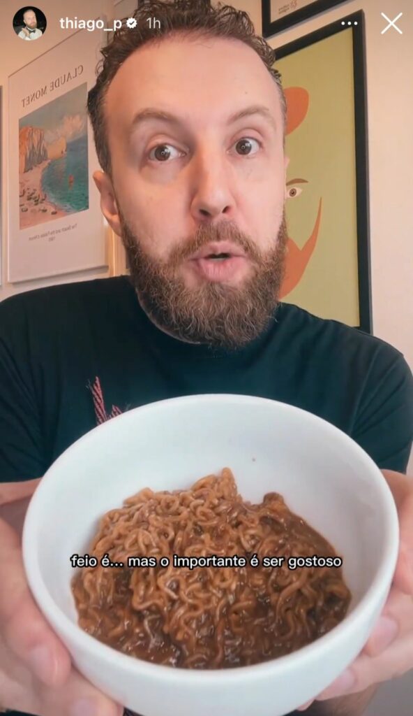 Na tarde desta quarta-feira, 1º, Thiago avisou os seguidores no Twitter que iria comprar o macarrão instantâneo e daria o veredito sobre o que achou do produto no Instagram. Ele não apenas compartilhou o momento em que fazia a receita, como também mostrou o momento em que comprou o produto por R$2,69 no mercado.