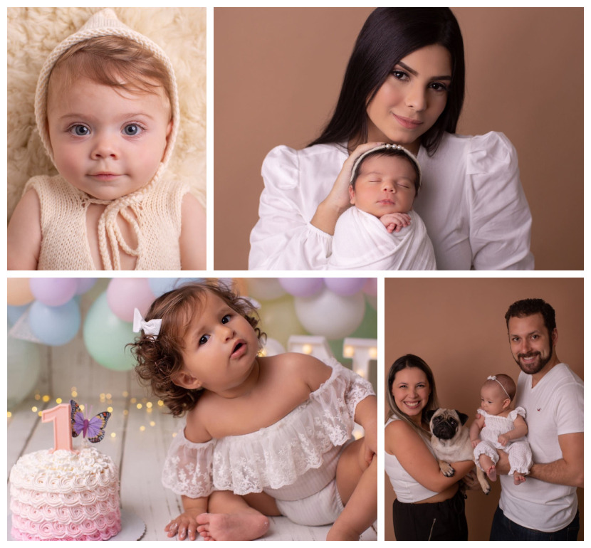 “Atualmente trabalho não só com recém nascidos, mas acompanho muitas famílias desde o nascimento dos bebês. Registro desde o nascimento, a gestação, os primeiros dias e acompanho o crescimento do bebê até o primeiro aninho. Muitos bebês que registrei quando nasceram vem até o estúdio para fazer ensaios, com 5, 6, 7 anos… e isso é muito gratificante. Ver as crianças crescendo e poder acompanhar as histórias das famílias”, explica Aline.