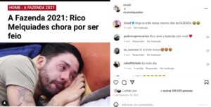 O ex-”A Fazenda” é um fenômeno nas redes sociais, tem mais de 9,5 milhões de seguidores no Instagram e compartilha vídeos virais onde transborda bom humor e muitas risadas. Entretanto, Rico fez um desabafo emocionante: “esse Rico, é um Rico fake. É o Rico que eu quero mostrar para a internet”.