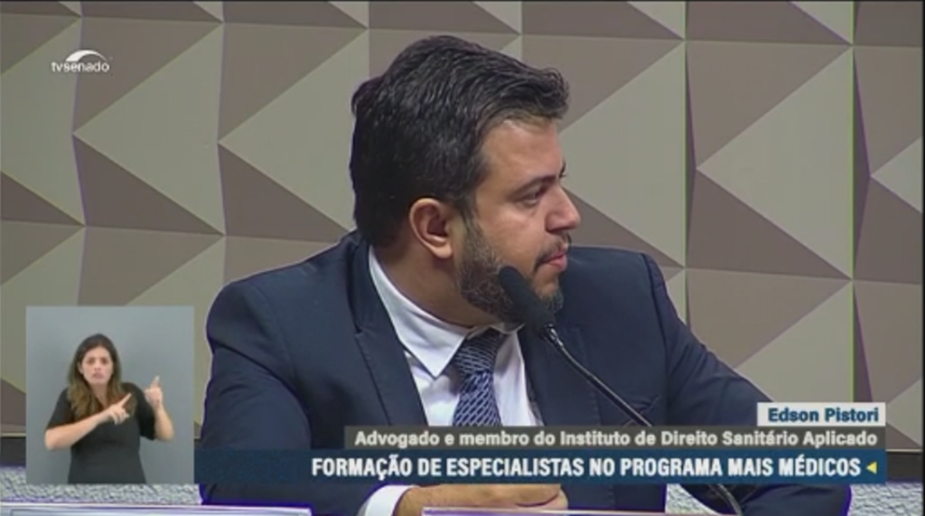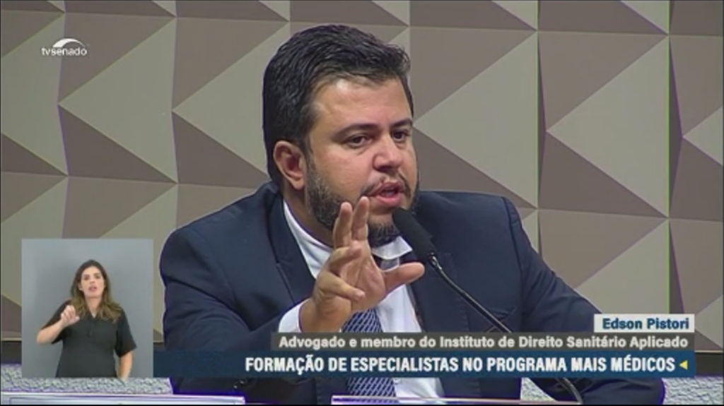 “Eu acho que nenhum país do mundo que busca profissionais do exterior faz medidas tão restritivas para que esse profissional venha para trabalhar em locais que são locais de difícil permanência mesmo. Então, eu acho que há que se reconsiderar. Mas, no debate de reconsideração do Revalida, algumas coisas poderiam ser feitas, e aqui gostaria de ousar pela oportunidade que estou no Senado, porque não a gente ampliar a base do Revalida para oportunizar por exemplo, a enfermeiros que tem mais de 10 anos de experiência na atenção primária, que faça o Revalida também, e se forem aprovados, também possam exercer a medicina? Porque não? Por que a gente não reflita essa possibilidade?”, disse o advogado Edson Pistori.