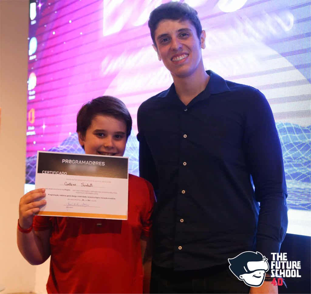 João Aleixo ainda detalha como funciona a escola que preparou o campeão. “A Formação em Tecnologia que oferecemos aqui na The Future School é muito completa, pois engloba as 3 principais áreas desse mercado (Robótica, Games & Apps) de uma forma inteligente e modular. Eu sou suspeito para falar, mas considero nosso método de ensino como a cereja do bolo, pois possibilita o aluno a seguir a trilha que mais gosta, dando foco nos conteúdos mais interessantes a ele, além de respeitar o tempo e as individualidades de cada criança ou adolescente. As nossas aulas são para o aluno e não para a turma e isso faz com que a criança tenha um nível de interesse e imersão muito maiores do que em escolas com métodos convencionais. Por fim, nossos conteúdos são desenvolvidos por pessoas que estão conectadas e ligadas no que está em alta no mercado de trabalho, por isso nossos alunos de níveis intermediários e avançados aprendem ferramentas profissionais de mercado, ou seja, conteúdos que veriam apenas em cursos técnicos ou universidades já começam a ser introduzidos ali perto dos 12-14 anos”, explica.