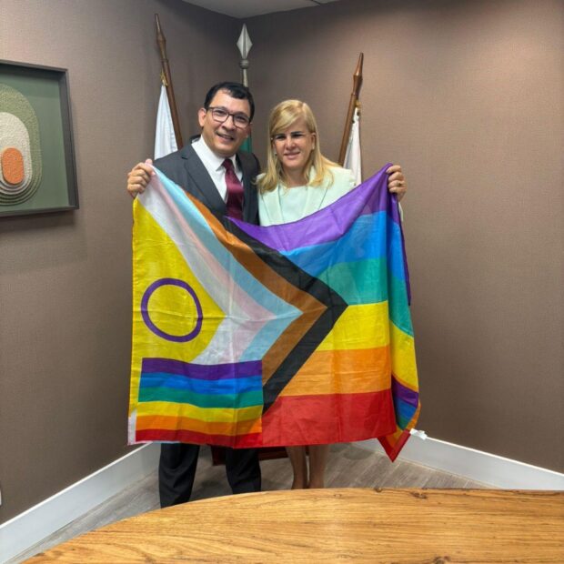 Ana Tereza Basílio acaba de assumir a presidência da OAB-RJ, mas já entrou para a história. Primeira mulher a ocupar o cargo, ela também se tornou a primeira líder da Ordem dos Advogados do Brasil a posar com a bandeira que representa toda a comunidade LGBTQIA+. O momento simbólico aconteceu ao lado de Nélio Georgini da Silva, recém-nomeado Diretor de Diversidade da seccional.