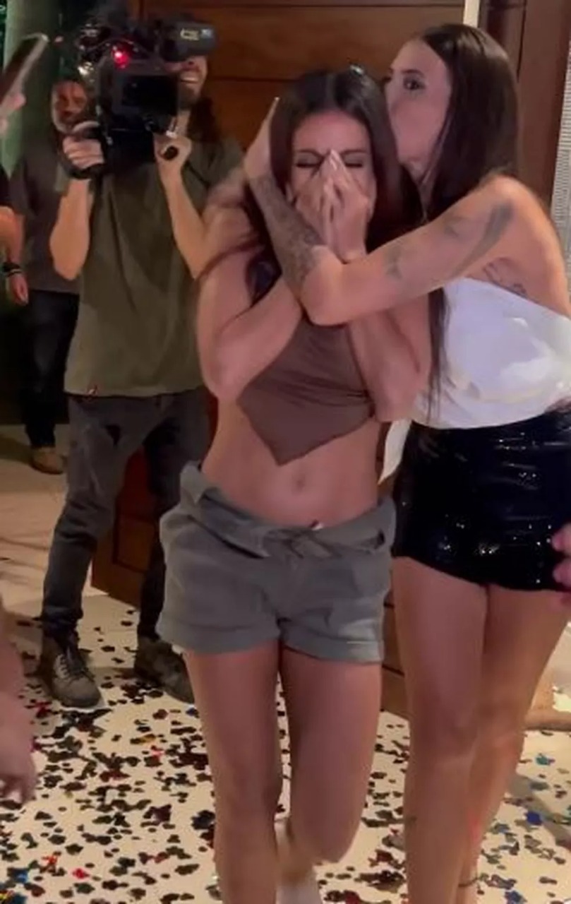 Ao chegar em casa, ela foi recebida com ‘parabéns pra você!’ e confetes.
