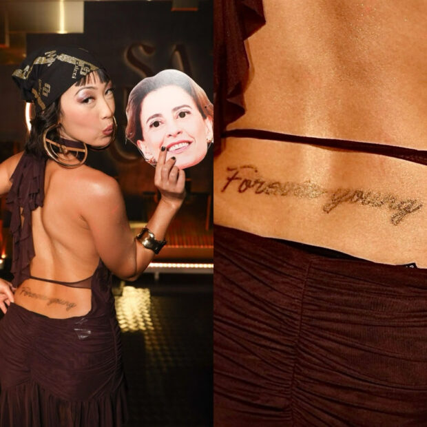 Para dar a largada na 34ª edição do Camarote N°1, a atriz Ana Hikari, conhecida por seu papel em Malhação: Viva a Diferença, já chegou causando comoção no prestigiado espaço. Declarando sua torcida para Fernanda Torres, Ana refez a icônica tatuagem com a frase “Forevis Yang”, de Fátima, personagem de Torres na série Tapas e Beijos, e posou com uma máscara com a imagem do rosto da atriz.