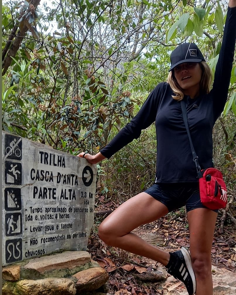 A dançarina é apaixonada por trilhas e esportes radicais, inclusive dedicando um destaque em seu Instagram (@sabrinascherer__) para mostrar suas aventuras pelo Brasil.