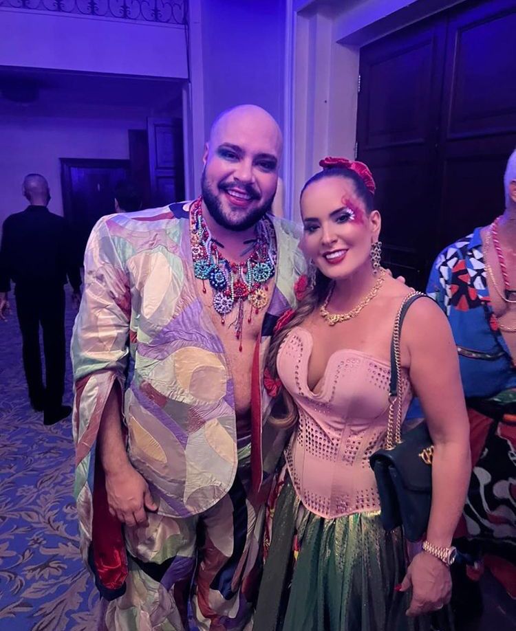 “Viemos ao Baile da Vogue 2022, celebrar o retorno do carnaval e claro que, com o tema Brasilidade, trouxe nosso Maranhão no meu look, prestigiando um dos grandes figurinistas e estilistas do nosso estado, meu amigo eterno Chico Coimbra. Essa saia que traz um traje de tambor de crioula pintado à mão, que ganhei de presente de Chico, rosas de Buriti no cabelo e, para abrilhantar, compus com esse corselet divo. Noite com muita gente feliz e querida!”, declarou a comunicadora em seu Instagram.
