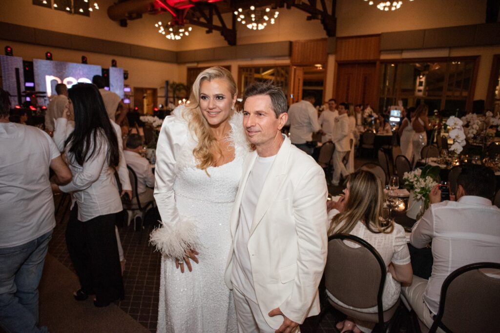 A recepção contou com a presença de famosos, influencers, parceiros e amigos.O ponto alto da noite ficou para a dança do quebra pratos, tradição grega que representa desapego material, sorte e prosperidade.