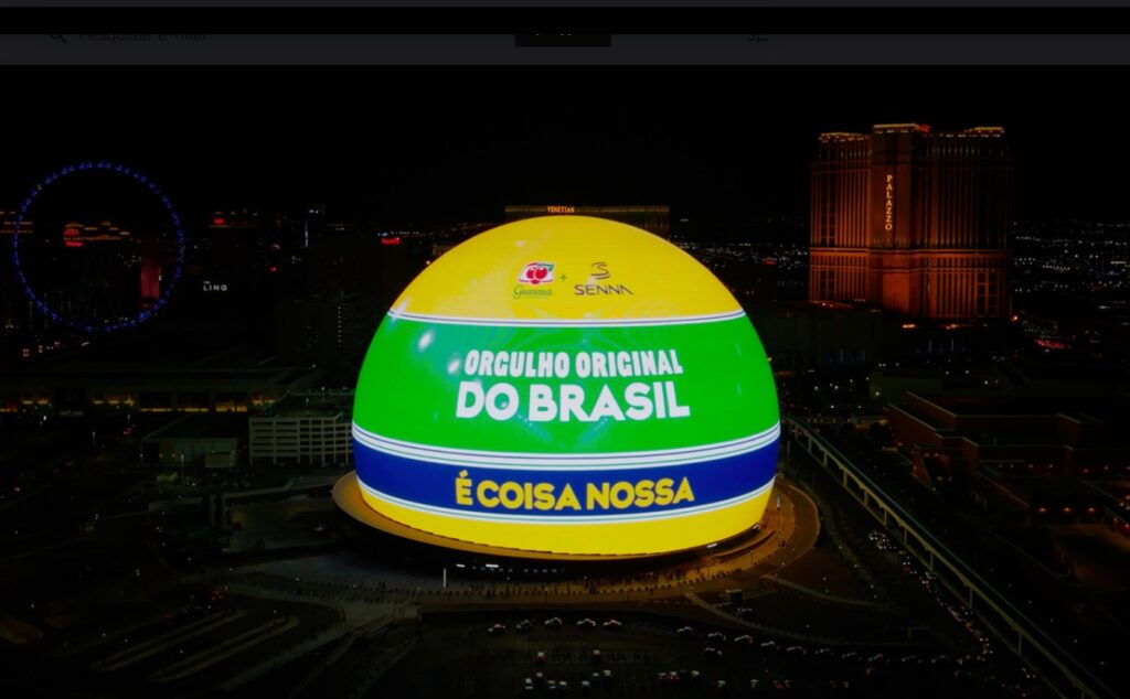 Ayrton Senna foi homenageado pelo Guaraná Antarctica com referência a seu capacete histórico. A marca celebrou os 30 anos da morte do ídolo nacional com projeção na maior estrutura esférica do mundo, em Las Vegas (EUA), para amplificar pelo planeta a memória do maior piloto brasileiro de todos os tempos. Nesta quarta-feira, dia 1º, uma animação de LED gigantesca simulando o capacete de Senna na imponente Sphere despertou a emoção entre os fãs do ídolo mundial.