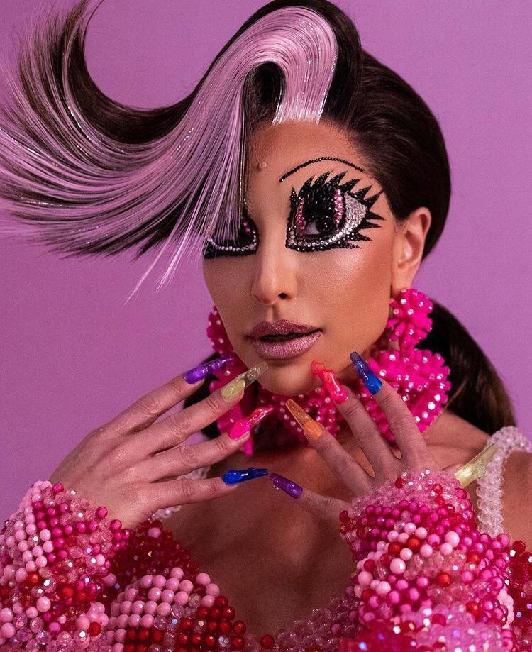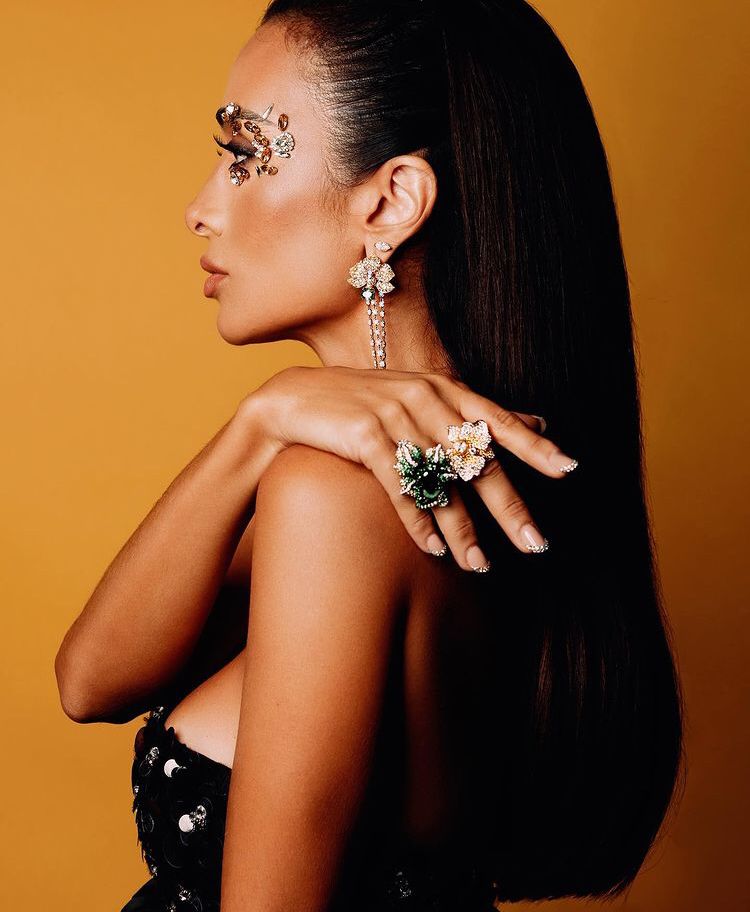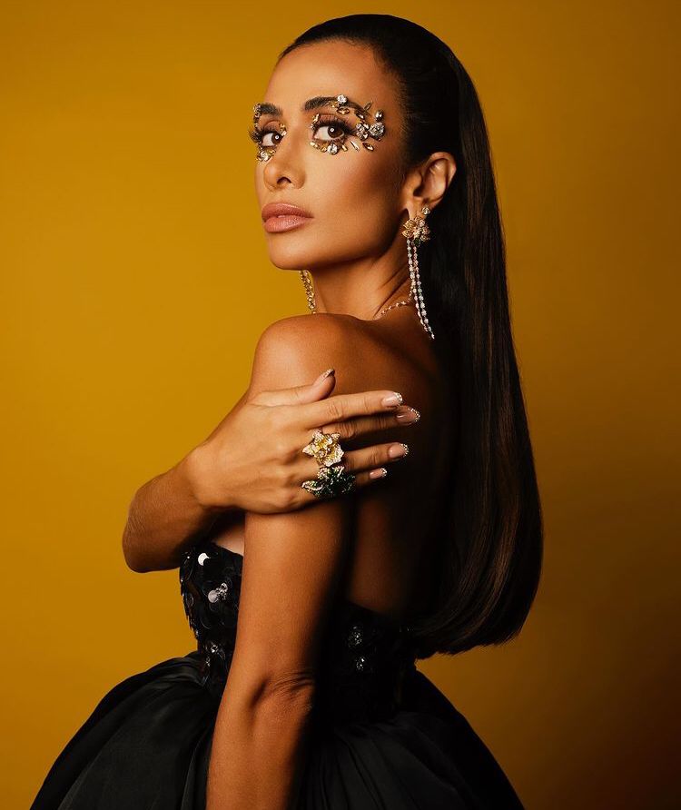 Já a influencer Silvia Braz, optou por um vestido luxuoso da grife Carolina Herrera, todo preto, com apliques de cristais ornando os olhos, para dar um toque carnavalesco ao look.