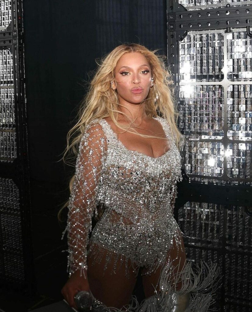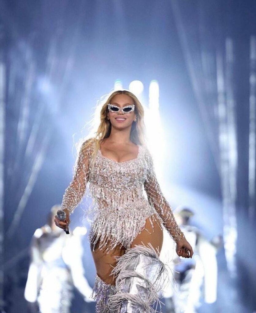 A maior estrela do pop mundial, Beyoncé usou um look exclusivo da PatBo – Patrícia Bonaldi, um body com franjas e bordados prateados, cor que se tornou assinatura da turnê. A peça sob medida foi bordada a mão e demorou 60 dias para ser feita.