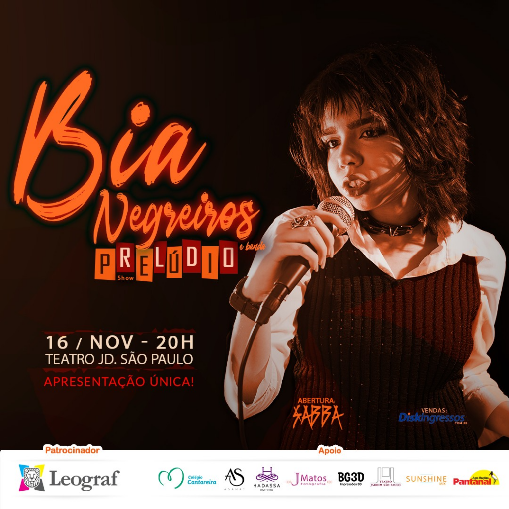 Após o sucesso no programa Canta Comigo Teen 5, Bia Negreiros se apresentará em um show exclusivo no dia 16 de novembro de 2024, às 20h, no teatro localizado no bairro Parada Inglesa, em São Paulo.