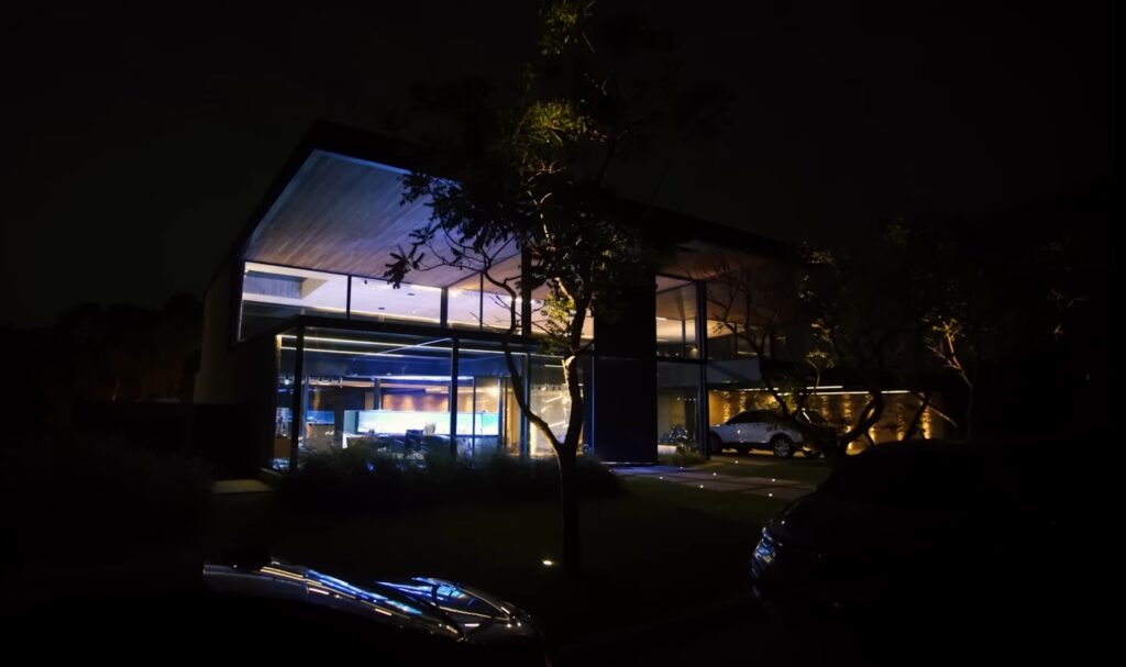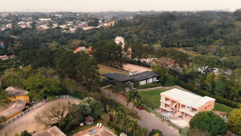 O projeto foi desenvolvido pelo antigo proprietário e conta com uma casa toda em vidro e estrutura metálica em uma área de 2.500 m² dentro do Residencial Haras Guancan.