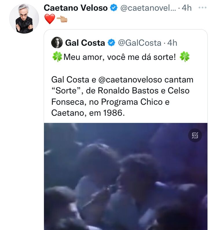Nas redes sociais, diversos artistas lamentaram o falecimento de Gal, dentre eles Caetano Veloso, seu conterrâneo da Bahia e com quem se apresentou diversas vezes. No Twitter, Caetano repostou um vídeo publicado originalmente no perfil da cantora, duas horas antes da divulgação da sua morte, onde os dois cantam juntos o hit “Sorte”.