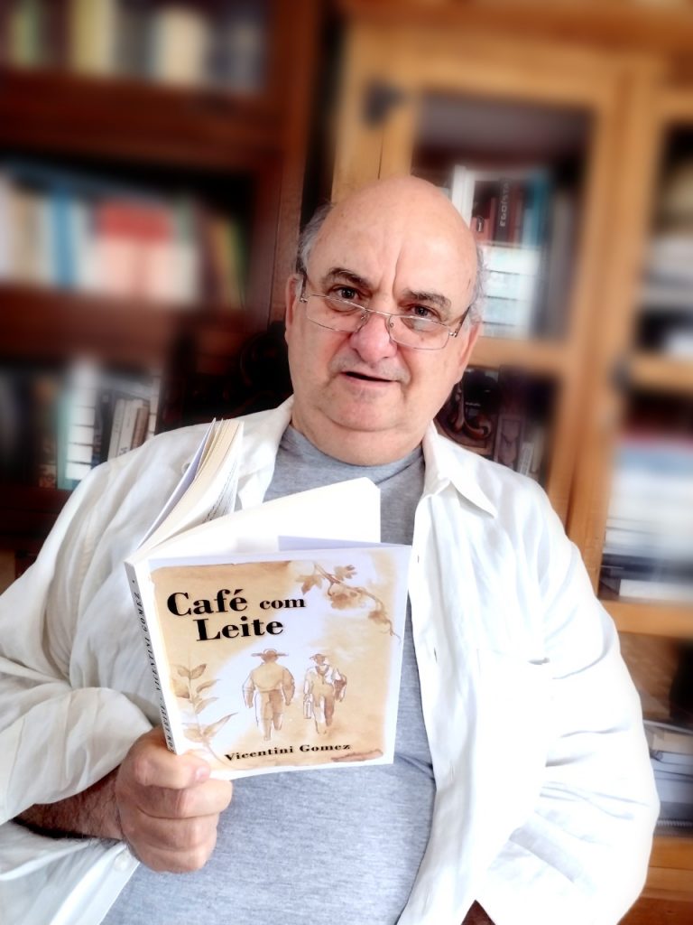 O escritor, ator e cineasta Vicentini Gomez lança o novo livro “Café com Leite”, que retrata a contribuição italiana na agricultura, em especial a produção do café, uva e vinho no Brasil. O romance inspirado na chegada dos italianos no país, pós-escravidão, retrata o aprendizado da língua, hábitos e costumes.