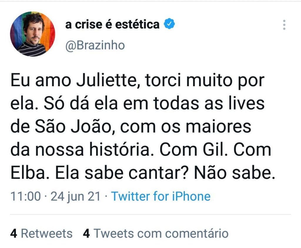 Caio Braz (34), apresentador de TV e influenciador digital, movimentou a manhã desta quinta-feira, 24/06, ao falar sobre as apresentações como cantora da badalada ex-BBB, Juliette Freire.