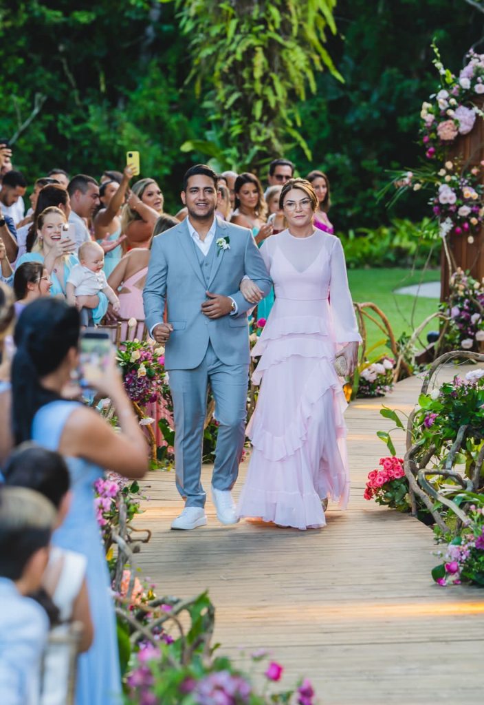 O casamento, conduzido pela cerimonialista Manú Carvalho, aconteceu no espaço Villa 21 Trancoso e foi todo decorado nos tons de rosa seco e pink, com 40 mil botões de diversas flores, predominando orquídeas, tulipas, bovardias e rosas.