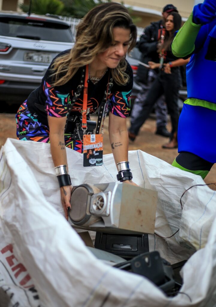 Patrícia Mazoni, coordenadora de sustentabilidade do CMW, explicou que 100% do lixo eletrônico arrecadado pelo festival é destinado corretamente: “Há um processo de desfazimento, em que esses resíduos são fragmentados e encaminhados para a indústria para serem reciclados e voltarem ao ciclo produtivo. Alcançamos um grande impacto social e ambiental ao livrar a comunidade inteira da Granja do Torto de resíduos eletroeletrônicos poluentes”, disse Patrícia.