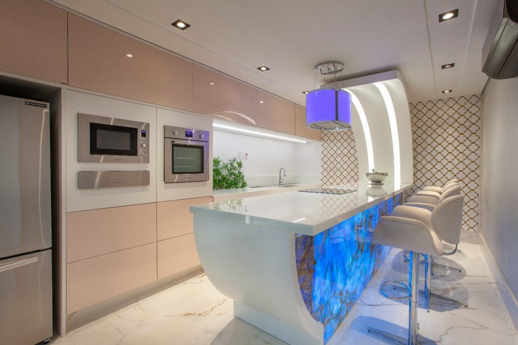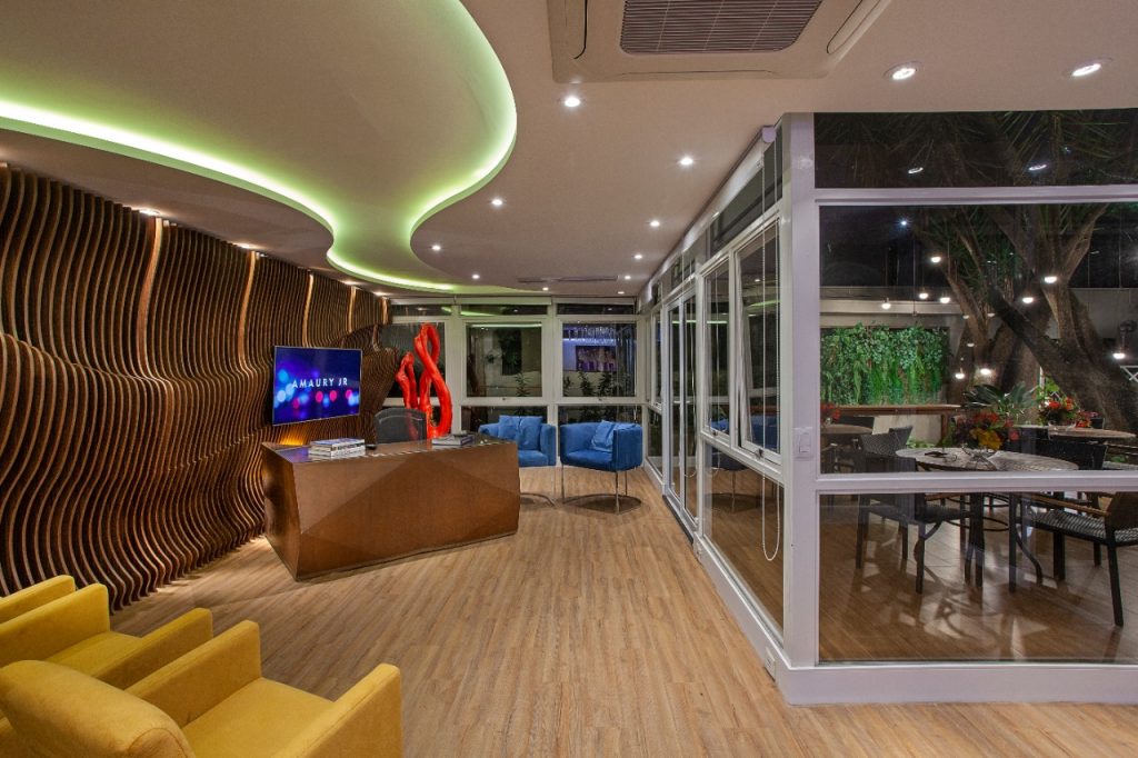 Solícitos, Iara e Aquiles conversaram conosco e, quando questionados sobre uma área preferida na casa-studio, o casal respondeu: ”todos os espaços são especiais e foram projetados com o mesmo cuidado e carinho. Porém, o Estúdio Bar resume a essência do projeto como um todo. Por esse motivo, Lounge, Café, Terraço, Gourmet e Estúdio Principal – com espaço para plateia – podem ser usados como cenários para entrevistas, festas e eventos. O Estúdio Bar – criado para receber amigos e entrevistados – tem um barman exclusivo para preparar drinks – reúne todas essas características, transmitindo um sentimento de encontro e celebração”, contam.