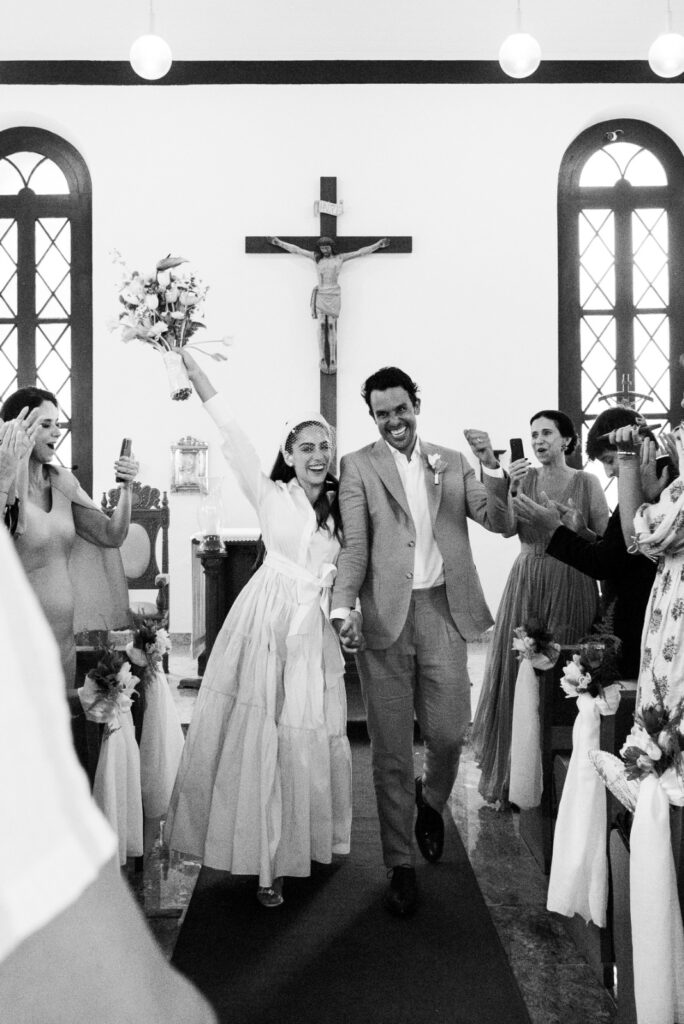 A influenciadora digital, Camila Yunes casou-se no religioso no último dia 5 de maio, com o empresário e dono da galeria Galate, Conrado Mesquita, em uma pequena cerimônia intimista para familiares e amigos. Com um vestido da consagrada grife Carolina Herrera e sapatos do ateliê Lane Marinho, Camila entrou na Capela de São Conrado, no Rio de Janeiro.