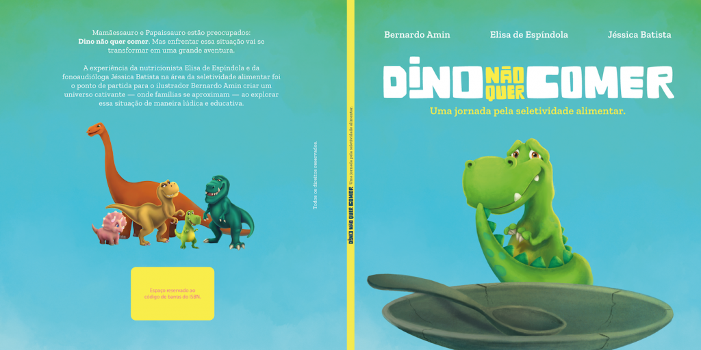 O livro, disponível exclusivamente em versão física e à venda pela Amazon, é fruto da parceria de três catarinenses: a nutricionista Elisa de Espíndola e a fonoaudióloga Jéssica Batista, que trabalham diariamente no atendimento de crianças seletivas, e o publicitário e ilustrador Bernardo Amin, que deu vida ao tema de forma lúdica, criando um universo cativante para divertir e educar pais e filhos. Na obra, a jornada que o pequeno dinossauro Dino enfrenta com a ajuda de seus pais e amigos para lidar com as questões da seletividade alimentar.