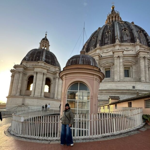 Ela enfrentou o desafio de subir ao topo da Basílica de São Pedro, percorrendo 300 degraus a pé e mais 300 com auxílio de elevador, e desceu os 600 degraus completos a pé. “Todo esforço valeu a pena para contemplar essa vista deslumbrante. Foi um privilégio poder apreciar uma panorâmica tão fascinante da cidade”, destacou a apresentadora.