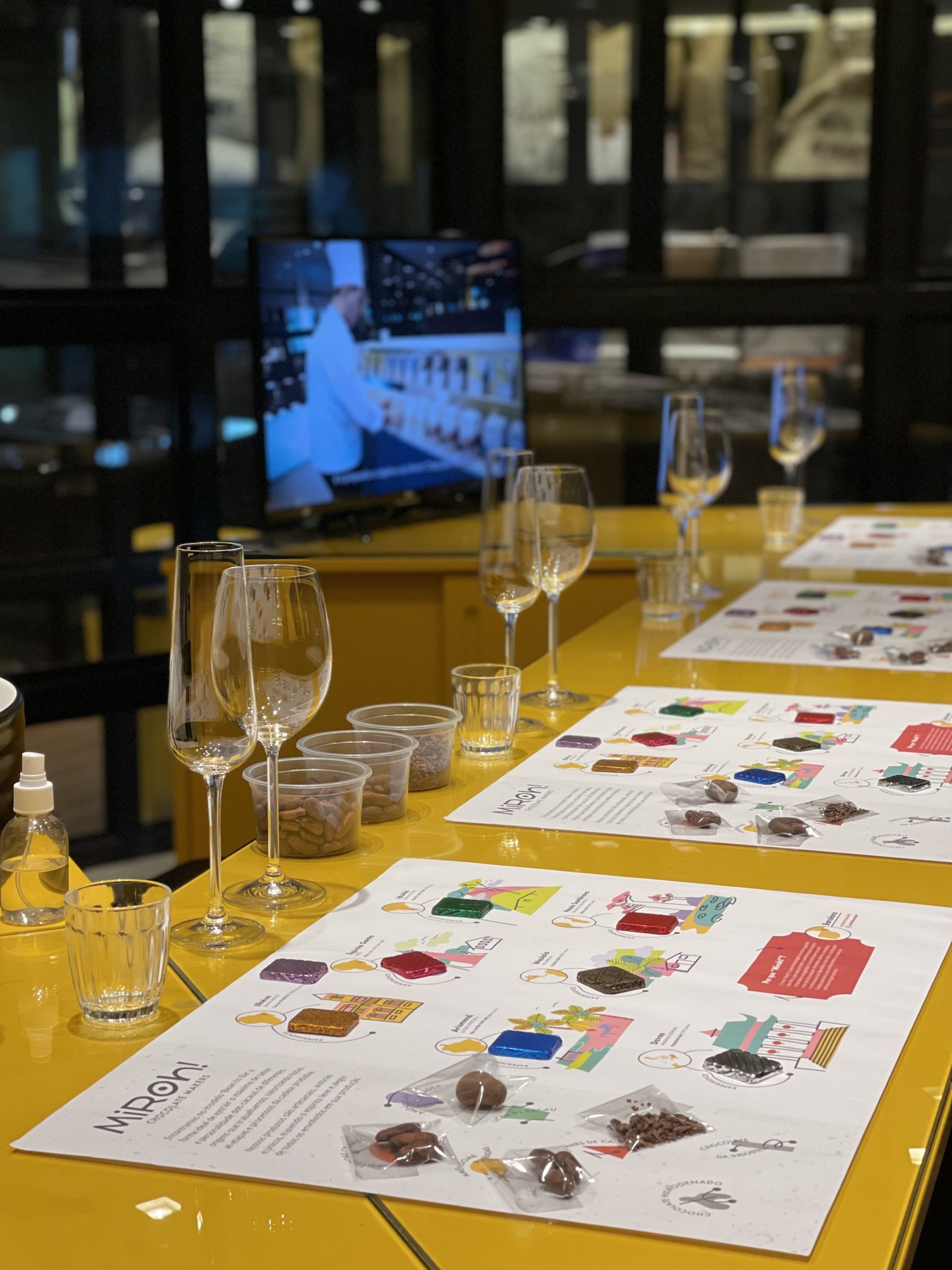 Os convidados também assistirão a um vídeo que mostra todas as etapas pelas quais passa o fruto e ganharão um “Mapa de Degustação Guiada” com a amêndoa crua, a amêndoa torrada, nibs de cacau, chocolate produzido com gordura hidrogenada, chocolate feito em escala industrial e oito tipos diferentes de chocolates Miroh.