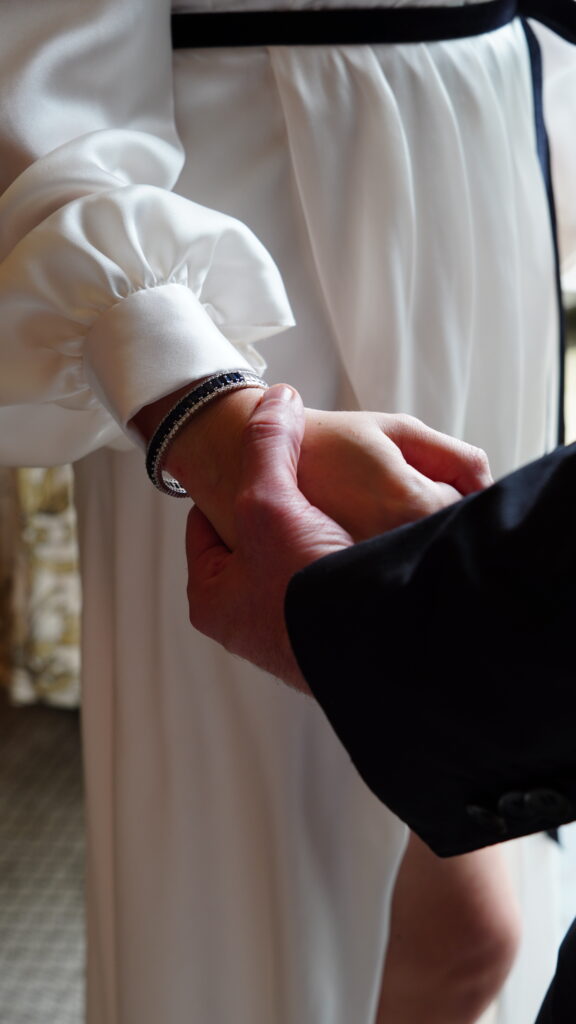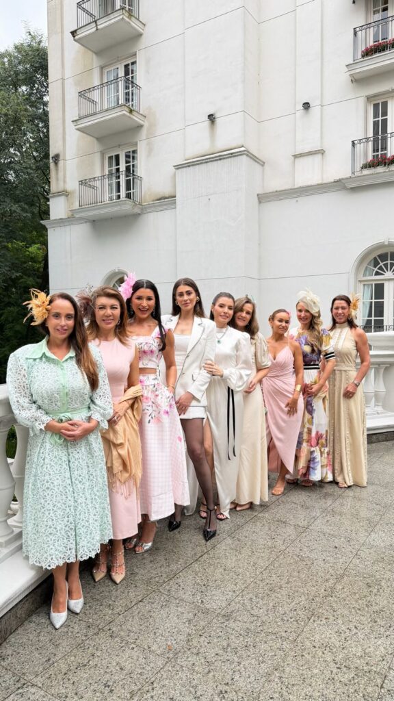 A transformação desse encontro em um rito de passagem foi potencializada pela curadoria de Paula Sabiao, gestora de experiência residente na Bélgica e amiga pessoal de Clara. Foi Paula quem trouxe o conceito dos fascinators, os adereços de cabeça icônicos da aristocracia inglesa, para garantir a autenticidade de um “Chá Londrino” em solo brasileiro. As convidadas mergulharam na proposta, criando uma estética de união rara de se ver. Clara, em um vestido de seda pura off-white da estilista Valéria Costa e joias de Alexandre Saddi, personificou a união entre a sensibilidade do design e a força industrial.