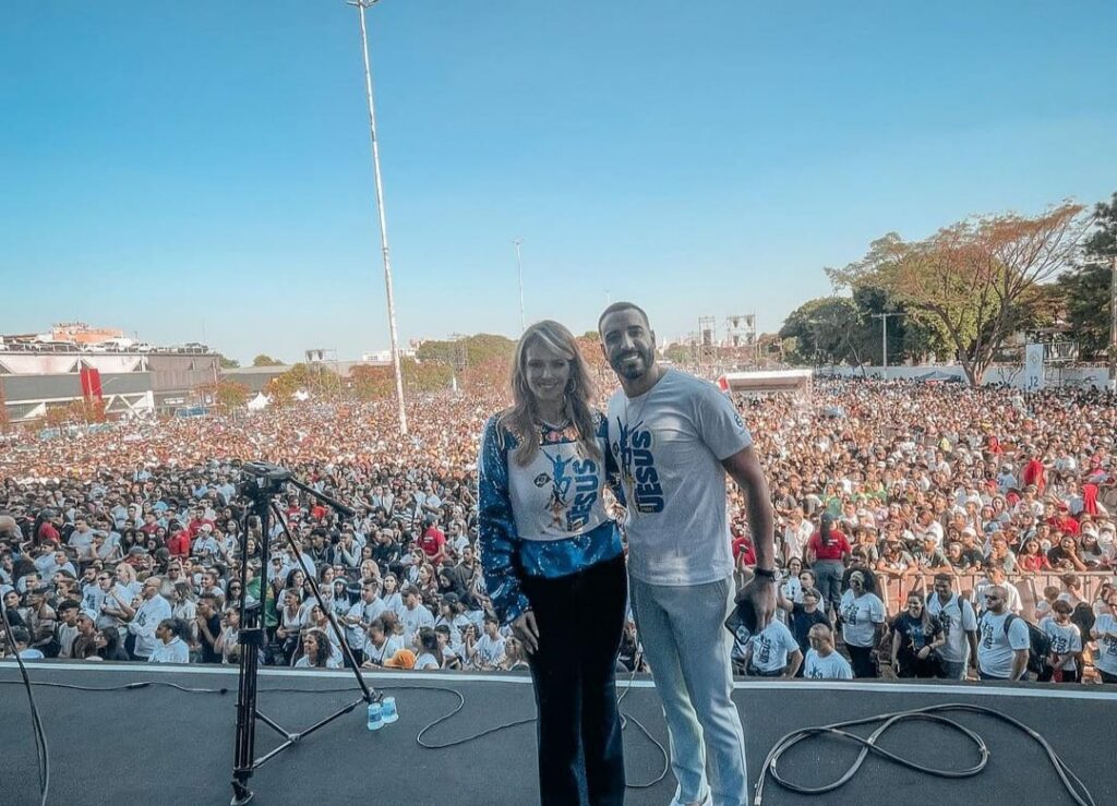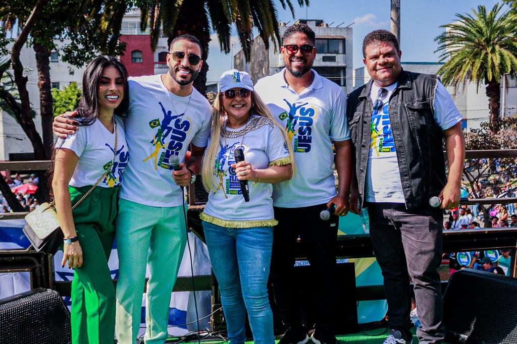 Em outro registro, ao lado da autora cristã best-seller Fernanda Hernandes, o pastor complementou: “Está sendo incrível essa marcha para Jesus”, descreveu. Ao fundo, na foto, podemos ver a multidão de fiéis que participava do evento.