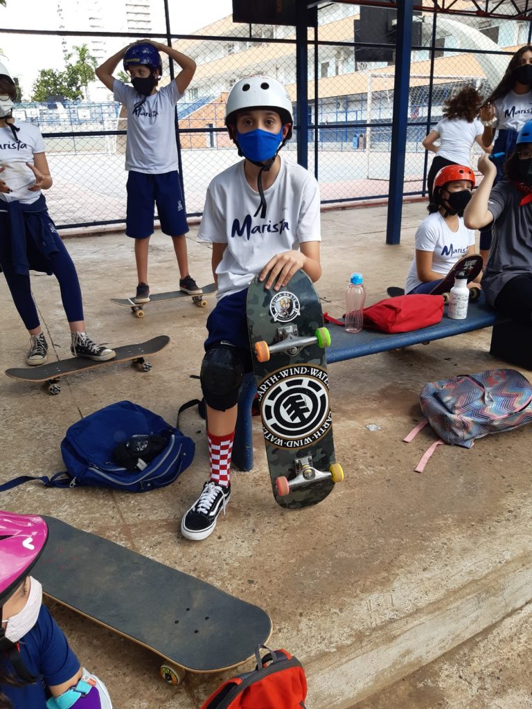 As Olimpíadas de Tóquio foram o “empurrãozinho” para que o Colégio Marista Goiânia introduzisse uma oficina de skate entre as diversas práticas oferecidas pelo Núcleo de Atividades Complementares (NAC). Com duas turmas lotadas de alunos do primeiro ao 9º ano do Ensino Fundamental, as aulas começaram no dia 03 de setembro e acontecem nas quadras externas da escola.
