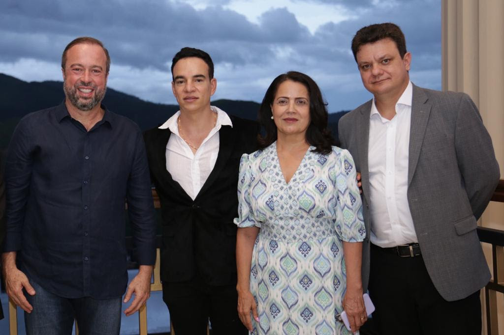 O senador Alexandre Silveira, o empresário Anderson Franco, a deputada Rosângela Reis e o deputado Odair Cunha