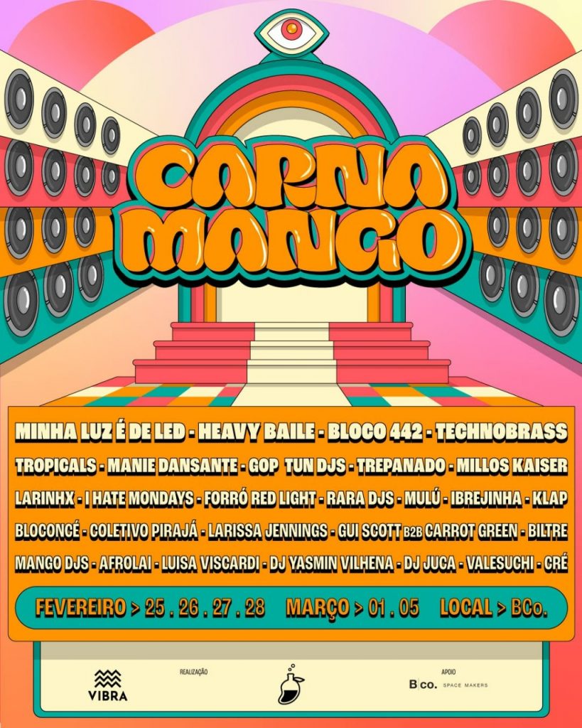 Heavy Baile, Minha luz é de LED e Bloco 442 são apenas algumas das mais de 30 atrações que o “CarnaMango” terá. Serão seis dias com mais de 60 horas de festas e uma extensa programação musical. O evento está sendo produzido pela Vibra Marketing e Entretenimento em parceria com a MangoLab.