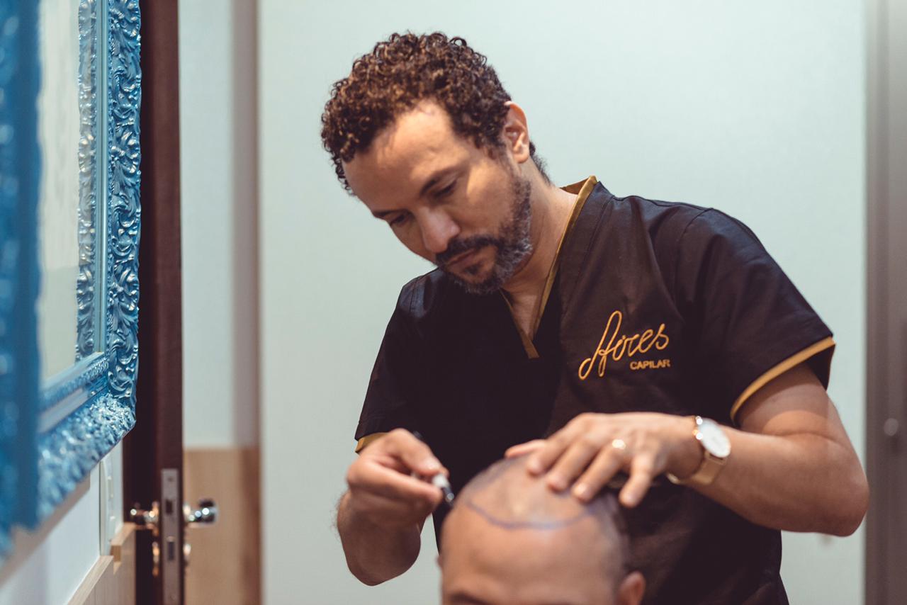Esse propósito surgiu da junção de sua vivência na barbearia do pai e da sua afinidade com trabalhos manuais. Foi a partir desses dois pontos de partida que, ao cursar medicina, o médico decidiu trabalhar com implante capilar. “Queria unir o cuidar e os trabalhos manuais em minha profissão”, explica Dr. Aires.