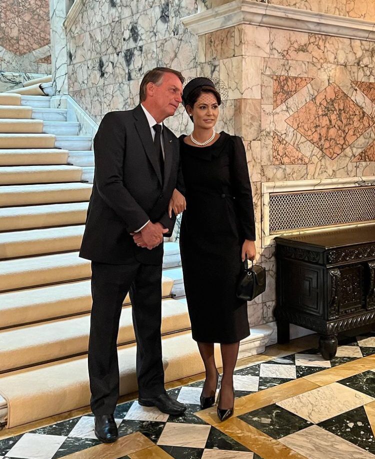 “Para representar a nação brasileira ao lado do presidente no funeral da Rainha Elizabeth II, um dos acontecimentos mais noticiados das últimas décadas, desenhamos para nossa primeira-dama Michelle Bolsonaro um modelo que respeita com elegância o protocolo centenário em relação à vestimenta de luto da família real da Inglaterra”, diz o Atelier Pawlick, onde o vestido foi confeccionado, em seu perfil no Instagram.