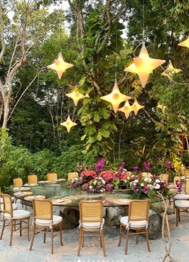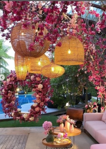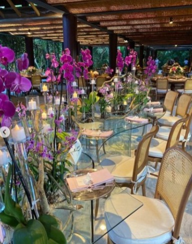 Com uma decoração do espaço toda elaborada em tons de rosa seco e pink, o evento, que aconteceu no espaço Villa 21 Trancoso, entregou uma experiência romântica e moderna aos convidados, com mais de 40 mil botões de diversas flores, predominando orquídeas, tulipas, bovardias e rosas.