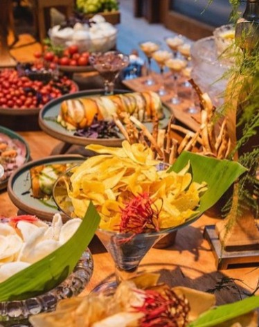O buffet oferecido pelo restaurante O Cacau contou com diversos pratos, divididos entre antepastos, fingers food e jantar.