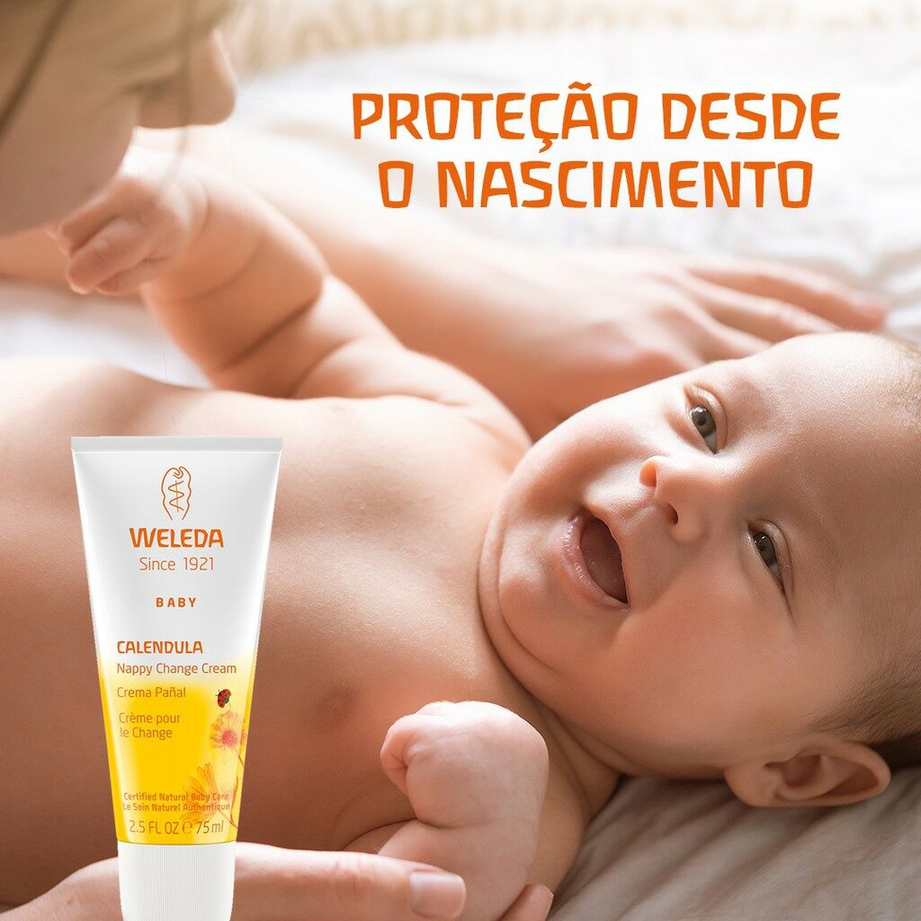 Um dos produtos mais amados da Weleda é o Baby Creme de Calêndula, uma combinação de calêndula, camomila e óleos de amêndoa doce e gergelim, que permite acalmar a pele irritada e reduz a vermelhidão na região da fralda.