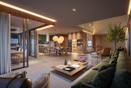 Com cinco tipologias diferentes e a mesma linguagem arquitetônica, o projeto oferece diversificadas opções de plantas e é assinado pelo escritório Primi & Appoloni. A concepção paisagística ficou por conta de Marcelo Faisal e Marcelo Novaes, enquanto a decoração da casa modelo foi feita por Cristiana Nassralla Interiores.