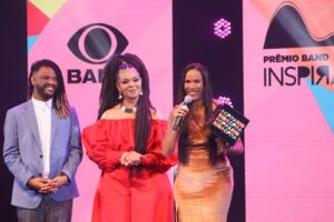 Rafaela França, fundadora do NEEM, recebe o troféu na categoria Atuação Social Favela.