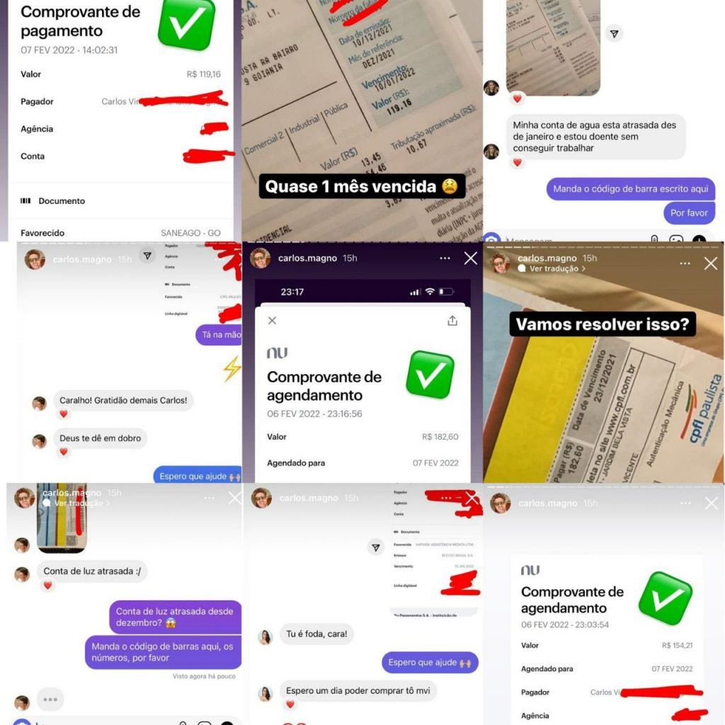 Os seguidores que estão sendo ajudados, além de estarem muito gratos com a atitude, também agradeceram ao influenciador nas redes sociais. Carlos revelou nos stories que realmente está fazendo isso e o gesto chamou atenção do público nas redes sociais, até daqueles que não acompanhavam o trabalho de Magno.