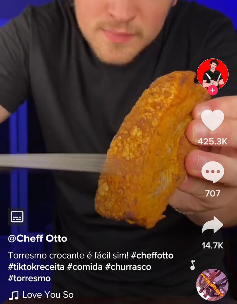 O torresmo crocante do @cheffotto ultrapassou as 400 mil curtidas. Na legenda, o chef escreveu: “torresmo é fácil sim”.