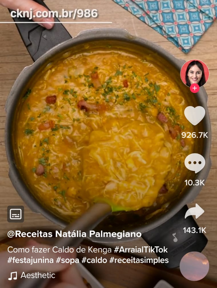 O caldo de Kenga da @cooknenjoy ultrapassou as 900mil curtidas. E apesar do nome inusitado, se trata de um caldo de frango com legumes bem cremoso e ideal para os dias mais frios. “Ninguém vai precisar sair de casa pra comer”, diz a criadora.