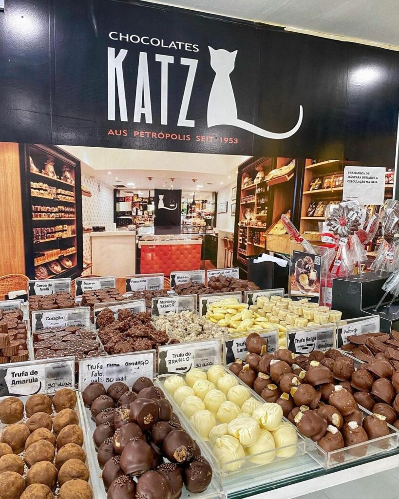 Katz, em Petrópolis – A serra fluminense também é origem de uma marca de chocolates fundada por uma alemã. Em 1953, Anne Katz, junto à amiga austríaca Ruth Bucki, decidiu reproduzir os sabores de sua terra natal no novo endereço, em Petrópolis. Assim nasceu a marca de chocolates que projetou seu sobrenome. Na primeira loja das imigrantes, encontra-se o chocolate nas formas de tablete e bombons, além de biscoitos amanteigados e até pé de moleque gourmet – tudo preparado artesanalmente desde sua fundação, mantendo uma tradição de 70 anos. O espaço funciona também como uma cafeteria, com um cardápio que aproveita o cacau em uma variedade de bebidas e quitutes.
