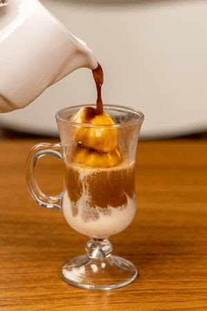 Termo italiano para “afogado”, esta é uma sobremesa feita com gelato de nata mergulhado (ou afogado) em café. Pode ser acrescida de biscoitos ou cobertura.