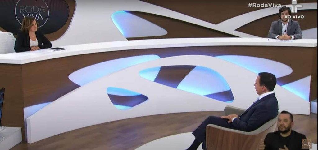 O programa Roda Viva, exibido pela TV Cultura, recebeu nesta noite do dia 23 de agosto, o governador de São Paulo João Dória. Para roda de perguntas conduzida pela jornalista Vera Magalhães, também estavam presentes nomes do cenário jornalístico como Joel Pinheiro da Fonseca (Rede Jovem Pan) e Vera Rosa (Estadão). Assuntos relacionados à sua gestão à frente do governo do estado e também sobre o enfrentamento da pandemia foram falados. Outro assunto espinhoso para Dória também veio à tona, a sua relação com o atual presidente. Afinal não é de hoje que o líder do Governo de SP e o presidente eleito trocam farpas, seja em entrevistas, lives, discursos e a situação é transmitida por grande parte dos veículos de informação.