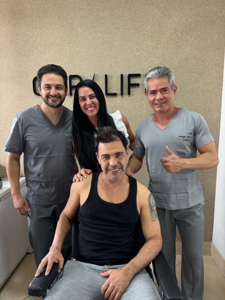 Durante sua visita à Clínica Capilife, acompanhado pela esposa Graciele Lacerda, Zezé Di Camargo passou por uma avaliação capilar completa, iniciando um tratamento personalizado às suas necessidades. “É uma honra recebê-lo aqui. Nosso compromisso é oferecer um tratamento excepcional, superando as expectativas de nossos pacientes”, declara o dermatologista.