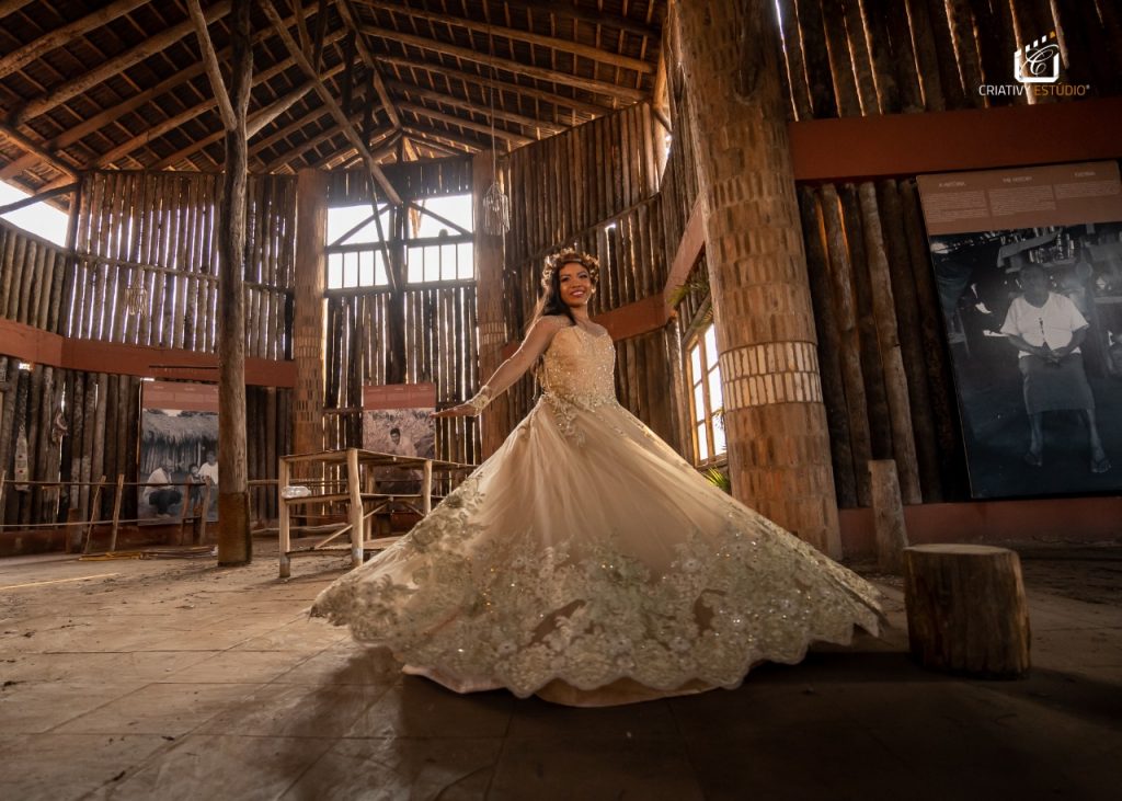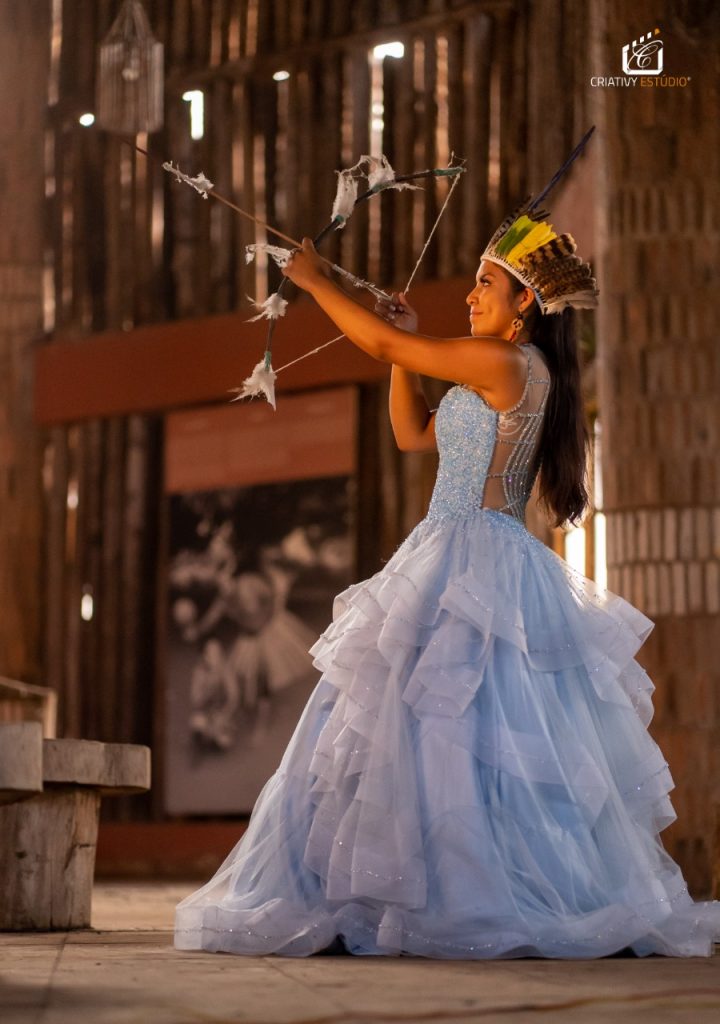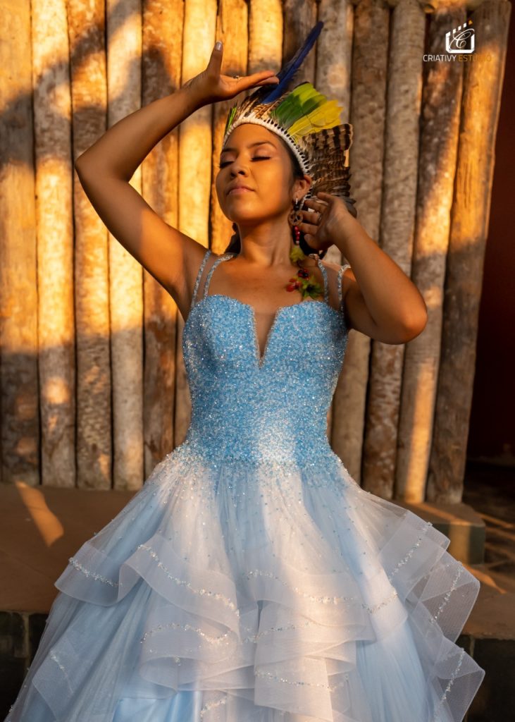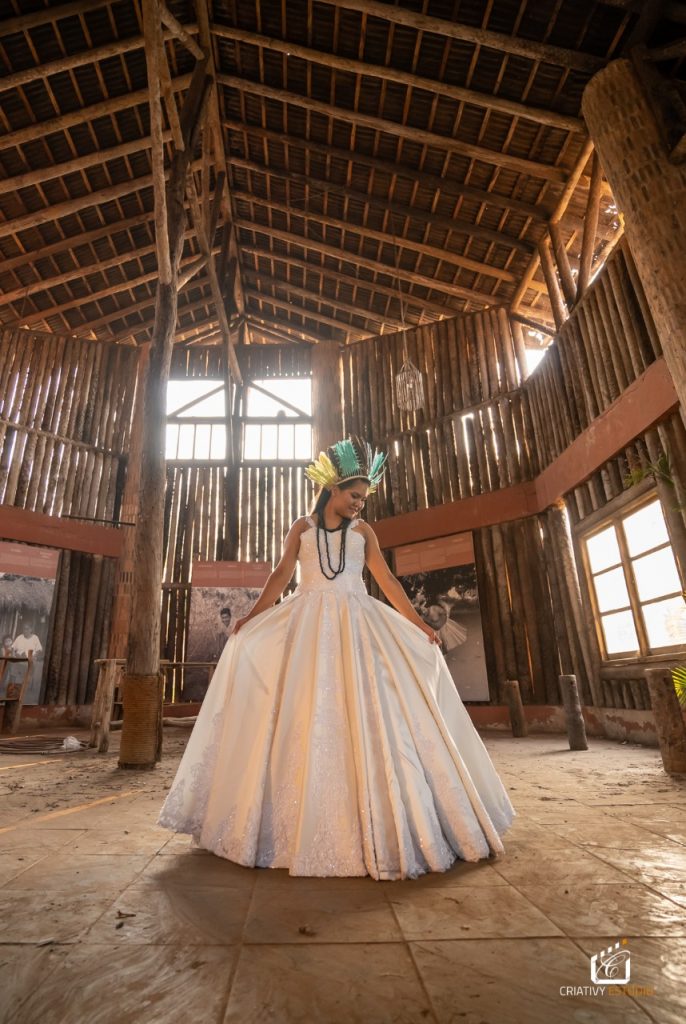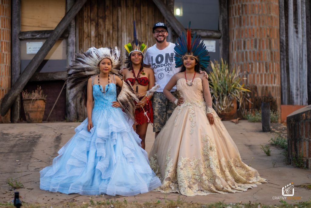 “Quando meu amigo comentou sobre a ideia de ir em uma aldeia, logo me interessei na proposta de poder acompanhar e fazer o registro da visita. Uma das pautas dessa visita seria levar um pouco da nossa tradição de comemoração de 15 anos. Claro que no local eles já tinham isso, mas também tivemos a oportunidade de mostrar a nossa realidade do vestido princesa e comemorações”, comentou.