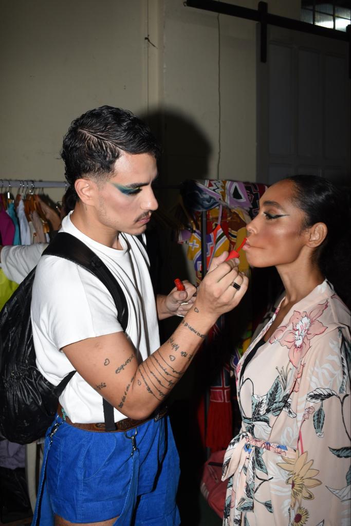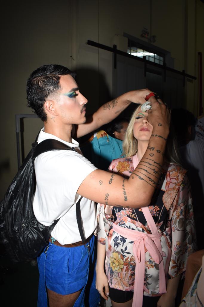 Pra criar a beleza dos desfiles Ernesto conta que quis muito trazer a questão do lúdico, onde pôde se divertir com a maquiagem, e buscar beleza no imperfeito, que é uma ideia que estava muito alinhada com as coleções e mensagens que trouxeram nos desfiles.