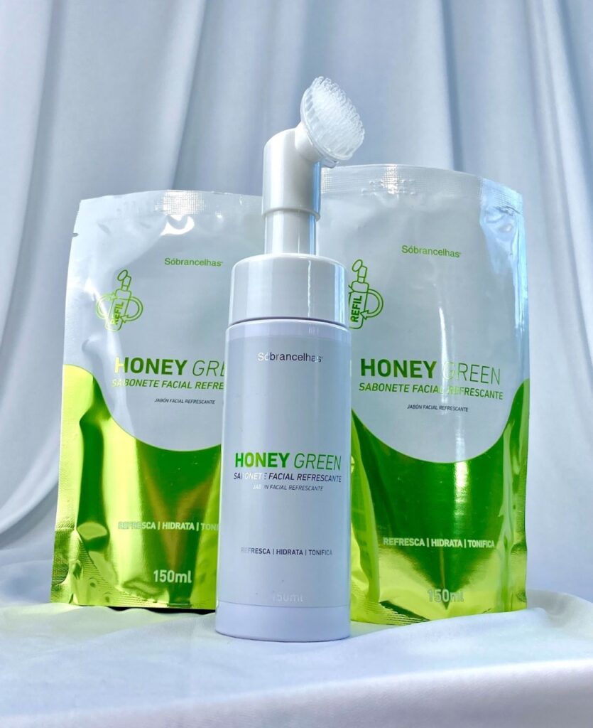 - Honey Green: Um sabonete facial vegano ultra refrescante e com bico espumador que permite que o produto seja aplicado uniformemente ao mesmo tempo que massageia. Ele mantém o equilíbrio da oleosidade natural da pele e limpa-a profundamente.