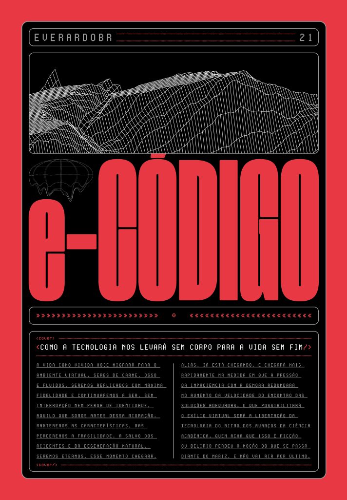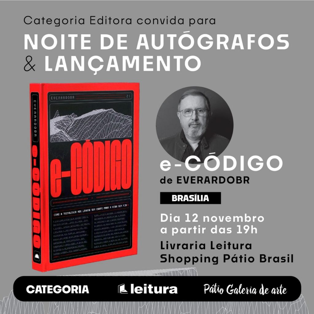 O autor Everardobr, Everardo Leitão, quis inovar em seu novo livro “eCódigo: como a tecnologia nos levará sem corpo para a vida sem fim” e usou um tema superinteressante a ser abordado: ciência e tecnologia. O lançamento e noite de autógrafos está marcado para a próxima sexta-feira, (12), a partir das 19h, na Livraria Leitura no Shopping Pátio Brasil em Brasília/DF. A obra é voltada aos profissionais da ciência, tecnologia, especialmente biotecnologia, filosofia, história, medicina e outras áreas de saúde. Mas os interessados por ficção científica, nerds, gamers e geeks, ainda que categorizado como não-ficção, podem ser atraídos pela leitura.